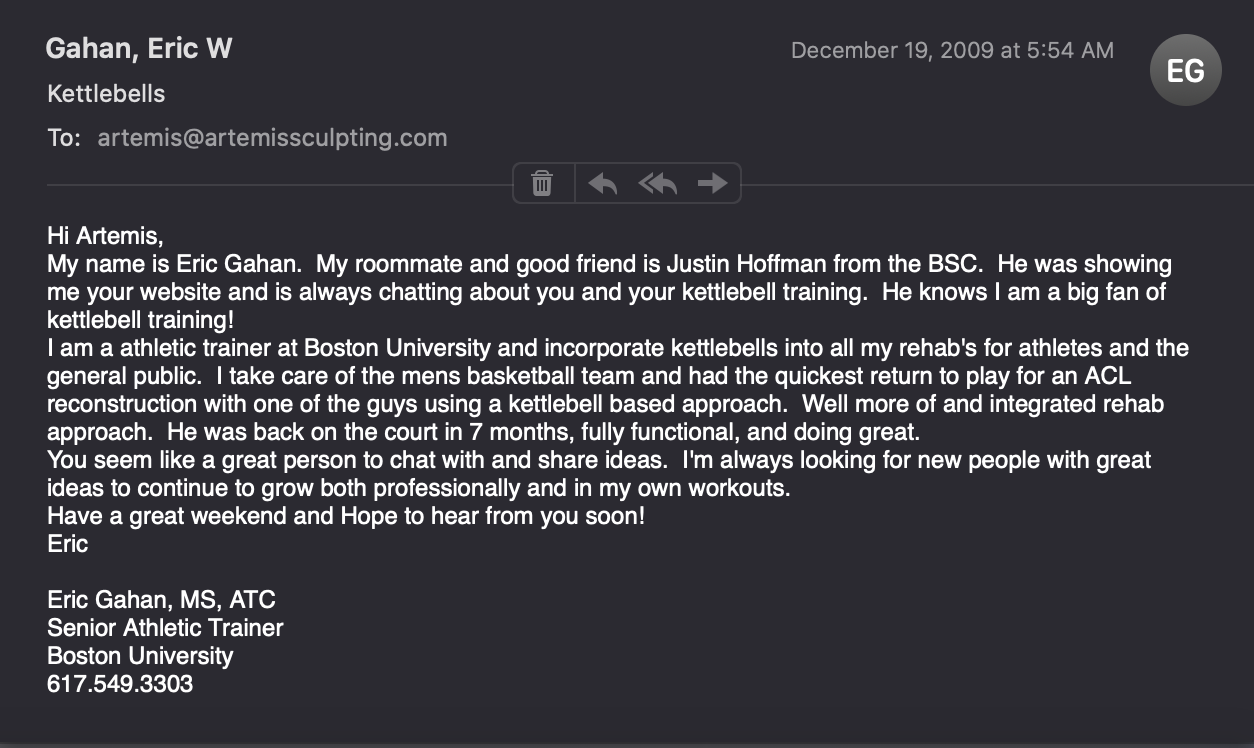 Justin also shared with me that the kettlebell connection would be the thing to seal the deal, and then asked me if it would be OK if he gave Eric my email address.